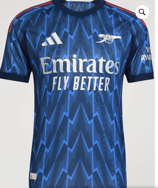 Arsenal 25/26 Away Shirt The Arsenal 2025/26 away shirt features a dark navy blue base with a royal blue lightning bolt graphic, red  Adidas shoulder stripes, and light silver logos, including the club crest. The design takes inspiration from the 1995/96 away kit and follows similar themes to the 2021/22 third shirt. We have the Arsenal…