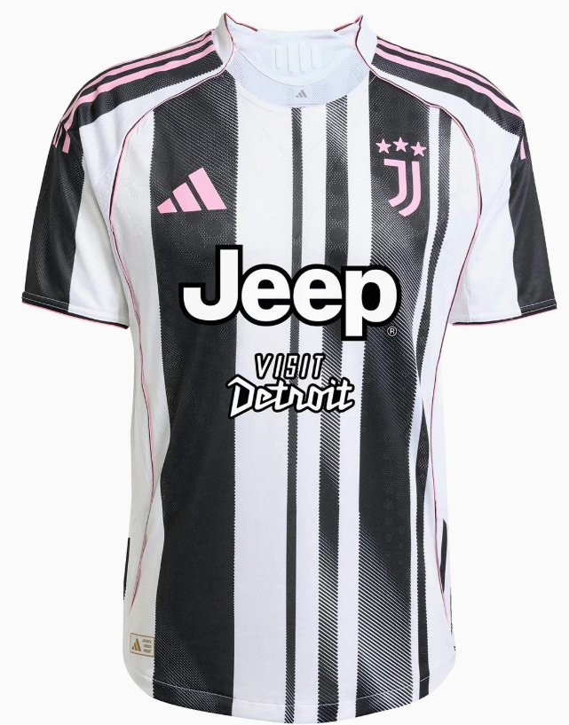 Juventus 25/26 Home Shirt The Juventus 25/26 home shirt features a unique ‘barcode’ design and the return of their nostalgic pink colour. The Juventus 25/26 home shirt combines the club’s classic white and black with pink logos and piping, a first in the team’s history. Officially, the colors are Black / White / Bliss Pink. Pink is…
