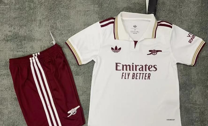 Kids Arsenal 25/26 Third Kit The Kids Arsenal 25/26 third kit features a white base with maroon logos and gold detailing, reminiscent of the 2007-09 Nike alternative kit, and includes a classic polo collar with gold and maroon stripes. The shirt uses a classic polo collar for the Arsenal 25-26 third kit. Both the collar and…