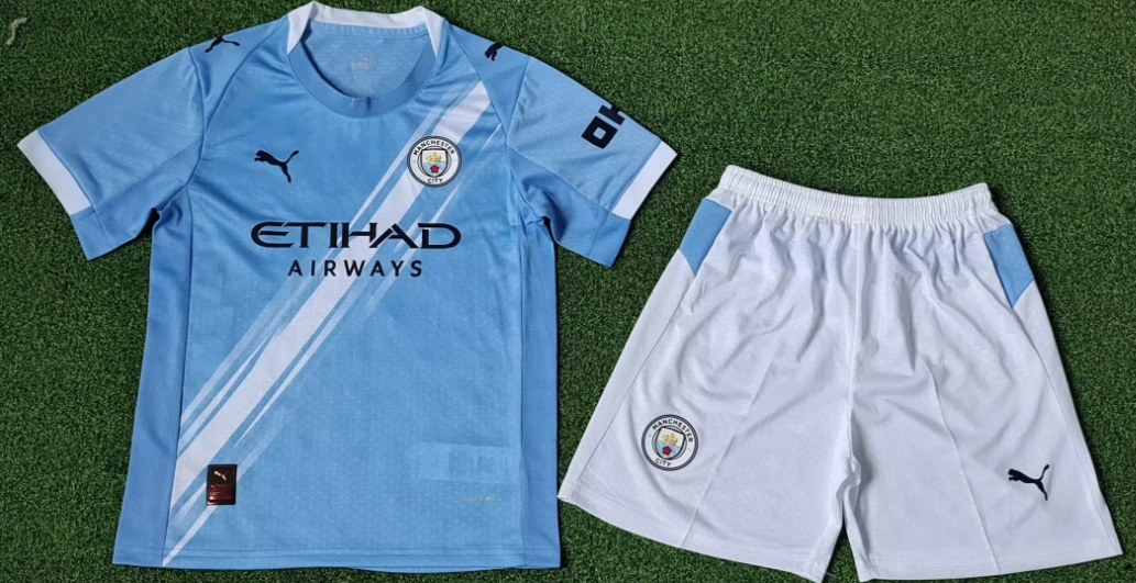 Kids Man City 25/26 Home Kit The new Kids Man City 25/26 Home Kit features the iconic sash for the first time on the home  shirt. The Kids Man City 25/26 home Kit is predominantly sky blue, with dark navy logos and white accents. The Man City 25/26 home shirt features a sash – one of the club’s…