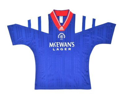 The Glasgow Rangers 92/94 Home Shirt comes in adult sizes Small, Medium, Large, Extra Large and 2XL.